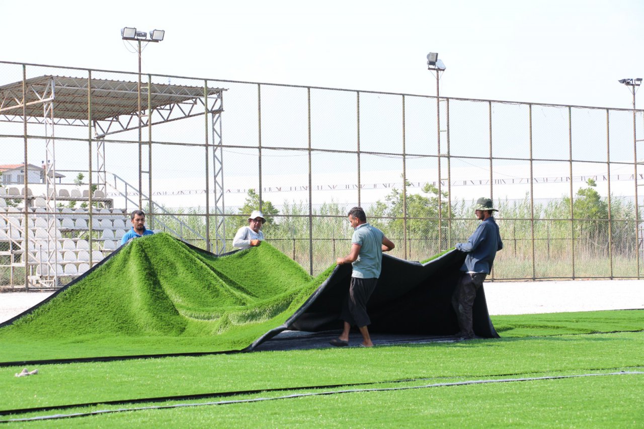 Antalya’nın Kaş ilçesinde yoğun kullanım nedeniyle zaman içerisinde deforme olan halı saha zeminleri yenileniyor. Bu çerçevede Kınık ve Yeşilköy mahallelerindeki halı sahalarda yenileme çalışmaları ge